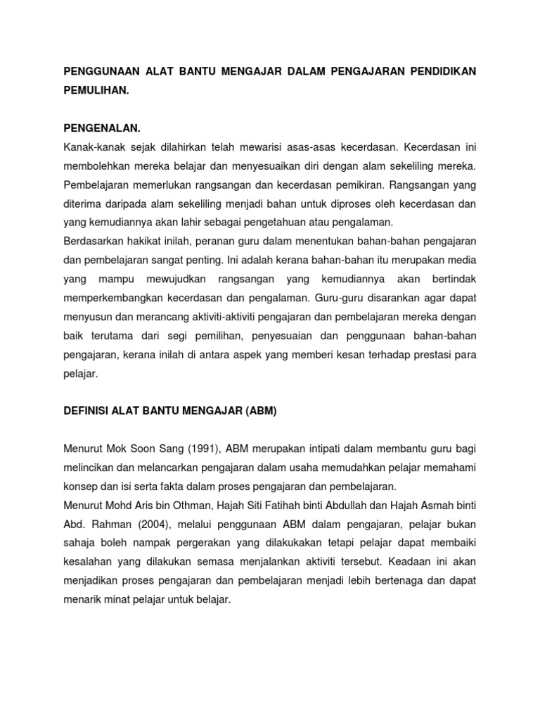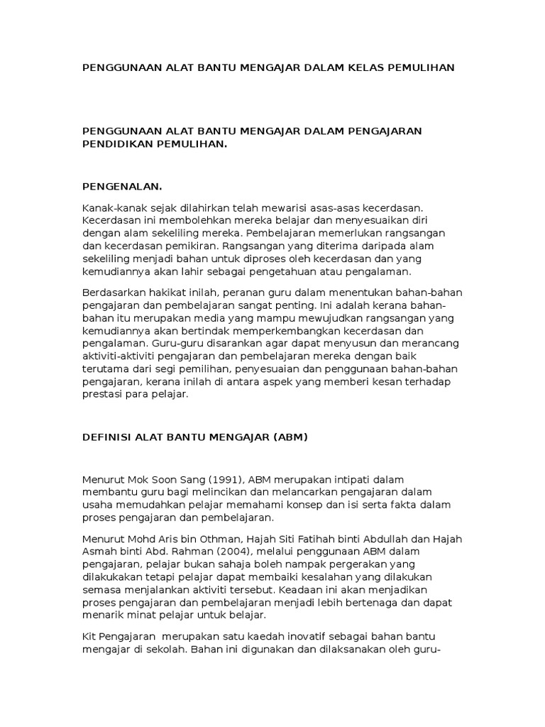Penggunaan Alat Bantu Mengajar Dalam Pengajaran Pendidikan Pemulihan Pdf